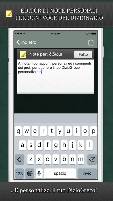 - Potete associare ad ogni voce del dizionario delle note con i vostri apporti personali quali informazioni, traducenti, appunti del professore. Queste informazioni saranno memorizzate in DizioGreco e compariranno ogni volta che consultate il lemma che avete editato;