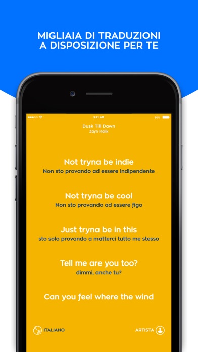 La grafica dell’applicazione molto piacevole ed in stile iOS 7. Direttamente dalla home dell’applicazione sarà possibile consultare i testi più consultati presenti sul portale o cercare un particolare brano, artista o album attraverso il campo di ricerca. Inoltre sarà possibile anche condividere il testo del brano sui social network, via email o messaggio semplicemente cliccando sull’apposita icona.