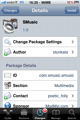 Sinceramente penso che dTunes sia migliore, dato che all’uscita permette di lasciare la musica in riproduzione a differenza di SMusic. Trovate SMusic su gratuitamente su Cydia tramite la repository di ModMyi.