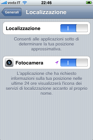 14. Nella schermata Localizzazione ora vengono visualizzate le applicazioni che hanno richiesto l’accesso a tale servizio entro le 24h: