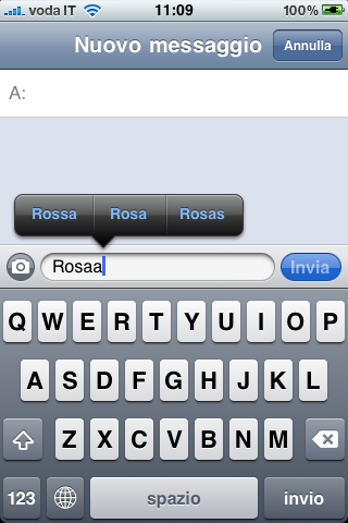 Facciamo un esempio pratico: Se proviamo a scrivere “Rosaa”, l’iPhone non ci correggerà la parola e ce la lascerà scrivere così come l’abbiamo digitata. Apparirà però una sottolineatura in rosso che individuerà appunto l’errore. Tornando indietro col cursore oppure cliccando due volte con un dito su questa parolina, vedremo apparire una serie di suggerimenti con un Font azzurro, tramite un piccolo pop-up contestuale. I suggerimenti in questo caso saranno “Rossa”, “Rosa” e altro e con un click sulla parola giusta potremo modificare in tutta velocità il nostro testo, eliminando gli errori.