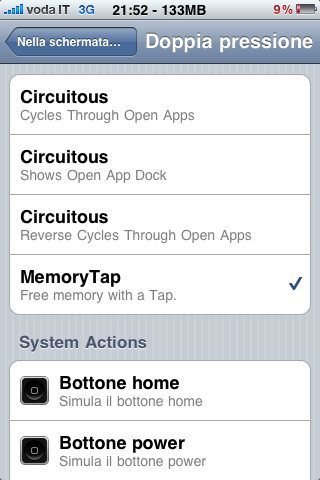 MemoryTap è un nuovo tweak davvero molto carino, disponibile su Cydia e che permette di lanciare con un gesto, che decideremo noi in precedenza, il comando free up memory per liberare la RAM occupata da applicazioni inutili.