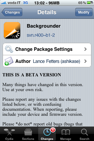 E’ disponibile una nuova versione di Backgrounder, l’utilissimo Tweak che attiva il Background e il Multitasking su tutti gli iPhone e iPod Touch. Si arriva così alla versione beta 3-2 svn.r400 che porta con se diverse novità. Andiamo a vederle di seguito.