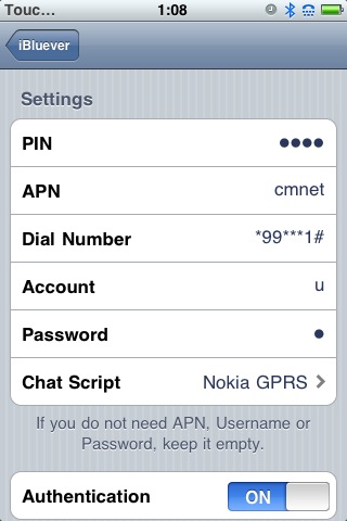 iBluever è un’applicazione disponibile in Cydia che permette di aggiungere un Client per accedere al servizio di dialup presente nella maggior parte dei cellulari dotati di bluetooth.