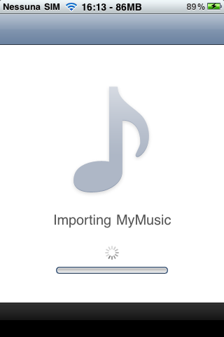 Una volta copiati i brani nella cartella My Music ci basterà aprire l’applicazione iPod ed attendere il caricamento dei brani, come potete vedere dallo screenshot in alto. Forse questo è l’unico punto a sfavore dell’applicazione, anche se comunque la copia dei brani avviene istantaneamente. Bisognerà purtroppo attendere questo processo dopo ogni sincronizzazione con iTunes. Una volta finito il caricamento troveremo i nostri brani nell’applicazione stessa pronti per essere ascoltati!