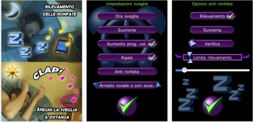 Basta Ronfare e Sveglia è una nuova applicazione con 3 funzioni in 1. La prima è quella che permette di rilevare il rumore durante il sonno, la seconda invece fornisce un rapporto sulle ore di sonno e la terza riguarda la sveglia, e la possibilità di staccarla anche a distanza, semplicemente battendo le mani!