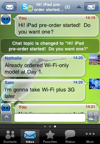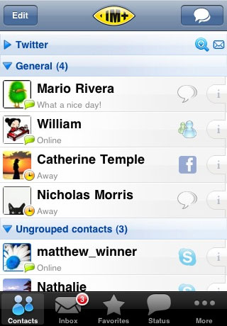 IM+ è sempre stata una delle migliori appicazioni per restare connessi a MSN, AIM, Skype e moltissimi altri social network come Google Talk e Facebook Chat. Quest’applicazione offre moltissimi altri servizi come la modalità in landscape, le notifiche push, l’integrazione con twitter, il browser integrato, e il riconoscimento vocale.