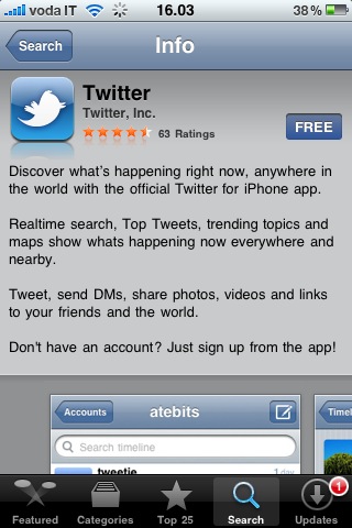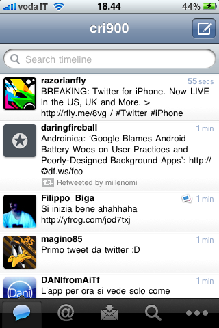 Come annunciato ieri, è disponibile nell’AppStore l’applicazione ufficiale di Twitter. Sostanzialmente si tratta soltanto di un semplice aggiornamento per Tweetie che migliora ulteriormente. Se prima era apprezzatissima, adesso che è gratuita lo sarà ancora di più.