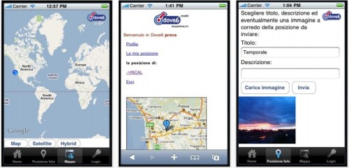 Sullo smartphone della Apple, come sulle altre piattaforme, dopo avere scaricato l’applicazione, vi basterà lanciarla per vedere apparire i dati gps e l’eventuale direzione di moto. Soltanto dietro richiesta, però, Dove6 app invierà la posizione al server e sarete sempre voi a decidere se renderla o non renderla visibile anche ad altri. A tutela dei tuoi consumi, l’invio dei dati dura solo pochi istanti dopodichè la connessione Internet si chiude automaticamente. Potrete arricchire l’invio con foto e note descrittive ed accedere direttamente alla vostra area privata per vedere le posizioni censite.