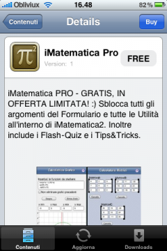 Per scaricarla gratuitamente basta accedere all’iMatematica Store ed accedere al contenuto in-app purchase che per un brevissimo periodo di tempo non comporterà nessun pagamento. Avrete quindi il passaggio alla versione PRO senza pagare nulla.