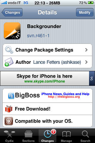 Trovate Backgrounder gratuitamente su Cydia tramite la repository di BigBoss.