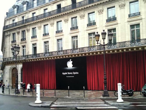 La location del secondo Apple Store parigino era nota già da tempo e da poco è arrivata anche la conferma ufficiale. Apple ha infatti installato all’Opèra un sipario di fronte alla facciata del nuovo punto vendita che lascia davvero pochi dubbi. Possiamo infatti leggere il nome dello Store che sarà Opèra e la scritta “prochainement” poco più in basso, che vuol dire “prossimamente”. Il nuovo edificio sarà sviluppato principalmente al piano, anche se gli alti soffitti hanno permesso ad Apple di aggiungere un secondo piano che sarà raggiungibile dalla classica scala di vetro.