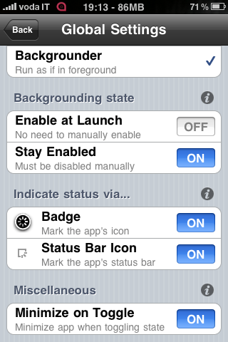 La nuova versione di Backgrounder rilasciata diverso tempo fa, ha portato un sacco di nuove funzioni. Se trovate difficoltà, vi invitiamo a leggere la nostra guida che potete trovare a questo link. Backgrounder è disponibile gratuitamente su Cydia tramite la repository di BigBoss.
