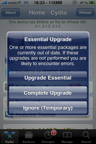 Da quanto abbiamo potuto constatare però, Cydia è diventato molto più veloce e stabile di quanto non lo fosse prima, mentre per quanto riguarda il MobileSubstrate, possiamo dirvi che non è ancora del tutto compatibile con iOS4 in quanto manda il telefono in Safe Mode non appena vengono aperte le applicazione che se ne avvalgono.
