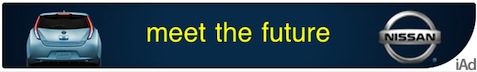 Uno dei primi annunci si concentra su Nissan Leaf, un’autovettura che verrà lanciata sul mercato da Dicembre e che sta già ricevendo molte considerazioni e interesse. Il relativo annuncio appare come un piccolo banner ed è marcato dal simbolino di iAd nell’angolino in basso sinistro che lo contraddistingue da tutti gli altri annunci pubblicitari. Toccando il banner, l’annuncio viene aperto a tutto schermo ed è possibile interagire con esso. E’ possibile inoltre chiudere la finestra in qualunque momento semplicemente tappando la “X” in alto a sinistra.