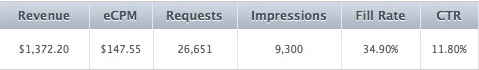 L’applicazione presa in analisi è LED Light For iPhone 4 Free, una delle applicazioni approvate ieri per utilizzare il flash dell’iPhone 4 come una lampadina, che vi abbiamo già proposto qui. Lo sviluppatore in un solo giorno, essendo l’applicazione stata approvata solo ieri, ha guadagnato circa $1.400 dollari, una cifra da capogiro ottenuta da un’applicazione completamente gratis e, ricordiamo, in un solo giorno. Nella fattura vediamo il valore eCPM (Costo Per Mille) che consiste nel totale del guadagno per mille impressioni. Questo valore dipende dalla percentuale di visualizzazioni e varia continuamente.