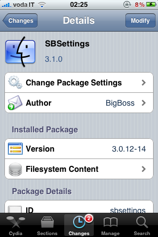 Trovate SBSettings gratuitamente su Cydia tramite la repository di BigBoss.