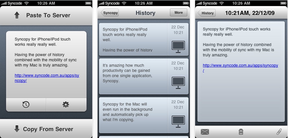 Con Syncopy vi sarà possibile trasferire dal vostro iPhone al vostro computer ciò che avete copiato, una sorta di “Copia e Incolla sul computer”. Passa da 0,79€ a Gratis. [Link iTunes]