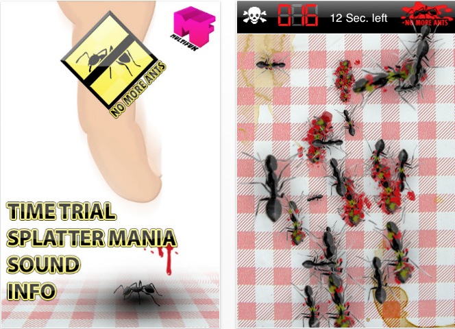 Stufi di vedere formiche ovunque? Lo scopo di questo gioco è quello di uccidere quante più formiche riuscite attraverso una serie di livelli che aumenteranno di difficoltà. Passa da 0,79€ a Gratis. [Link iTunes]