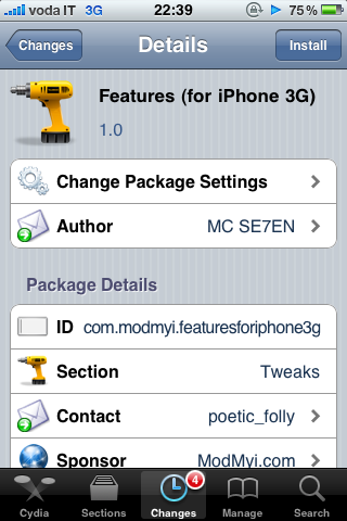 Trovate Features for iPhone 3G gratuitamente su Cydia tramite la repository di ModMyi.
