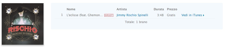Il brano gratuito fino a martedì prossimo è “L’eclisse” di “Jimmy Rischio Spinelli”. Per scaricarlo potete utilizzare questo link.