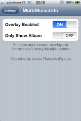Dopo aver scaricato ed installato MultiMusicInfo da Cydia, avrete la possibilità di visualizzare le informazioni aggiuntive sopra elencate, a fianco del nome della canzone nella barra del controllo iPod. Inoltre, MultiMusicInfo andrà a sostituire l’icona dell’applicazione iPod nella barra con l’immagine dell’album, se presente. Potremo anche impostare se visualizzare solamente il nome dell’album e attivare o meno il contorno dell’icona dell’album.