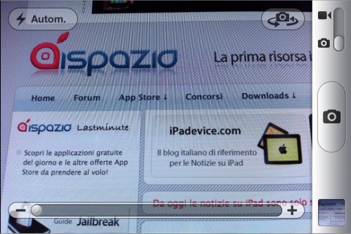 Oltre all’HDR, l’applicazione fotocamera è stata aggiornata ed ora supporta a pieno la modalità landscape. Vedremo infatti ruotare i pulsanti ed anche la posizione della barretta per lo zoom