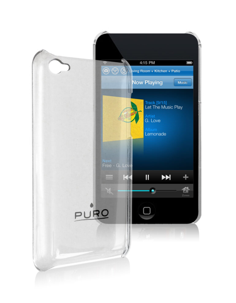 Custodia protettiva in materiale trasparente e flessibile capace di plasmarsi per avvolgere l’iPod Touch di 4° generazione e garantire una completa protezione da urti e graffi lasciando libero l’accesso ai comandi del pannello frontale e al foro per la ricarica. Disponibile in 2 colori, nero e trasparente, la cover è caratterizzata da un elegante effetto lucido e dal logo Puro stampato sul retro, dove si trova anche il foro per la fotocamera. Prezzo consigliato al pubblico (IVA inclusa): € 9,90