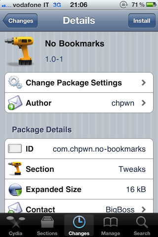 No Bookmarks è disponibile gratuitamente su Cydia nella repository di BigBoss.