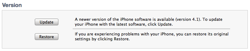In questo modo iTunes non ci chiederà più di aggiornare con una versione più recente di iOS (almeno fino all’uscita di una versione successiva al 4.1) e potremo installare le applicazioni che richiedono iOS4.1 come requisiti minimi. Come già detto però, non avremo a disposizione le nuove funzioni, come il Game Center o l’HDR.