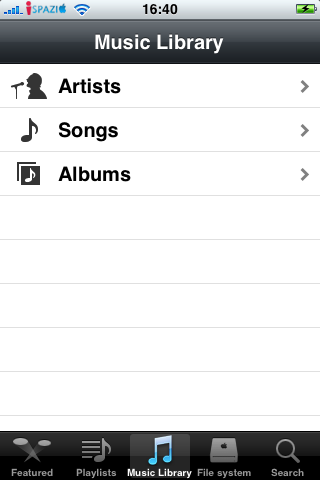 Errrik, lo sviluppatore di iSlSk, mi ha gentilmente inviato la versione Beta di PwnPlayer, ed ecco quindi una recensione completa in anteprima. Per chi non avesse letto i nostri articoli precedenti, si tratta di un Player Multimediale alternativo, nato principalmente per riprodurre i brani scaricati direttamente dal browser interno dell’iPhone e dell’iPod Touch, senza passare per iTunes e il computer di casa. Appena lanciamo l’applicazione possiamo notare che è composta da 5 Tab sul menu inferiore: Featured, Playlists, Music Library, File System e Search. Analizziamoli nei dettagli: