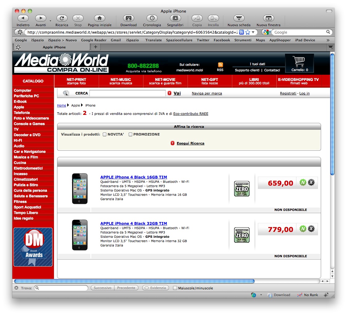 Ieri vi abbiamo segnalato la disponibilità degli iPhone 4 della 3 sullo store online di Mediaworld ed entrambi i modelli venivano offerti al prezzo vantaggioso che propone l’operatore. Abbiamo ipotizzato che le scorte potessero essere rifornite a cadenza giornaliera ma purtroppo non è così.