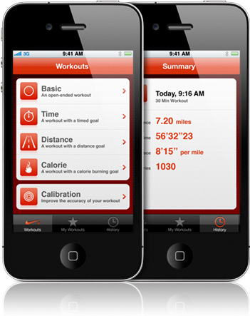 Nike+ è un servizio molto utile, frutto di una collaborazione tra Apple e la Nike, partita nel 2006. Consente, tramite un sensore (contapassi) inserito all’interno di un paio di scarpe Nike predisposte, il monitoraggio wireless della distanza percorsa, delle calorie bruciate, del tempo impiegato e della frequenza (tempo stimato al passo attuale per percorre un km). Il tutto in una interfaccia estremamente semplice ed intuitiva come Apple sa fare.