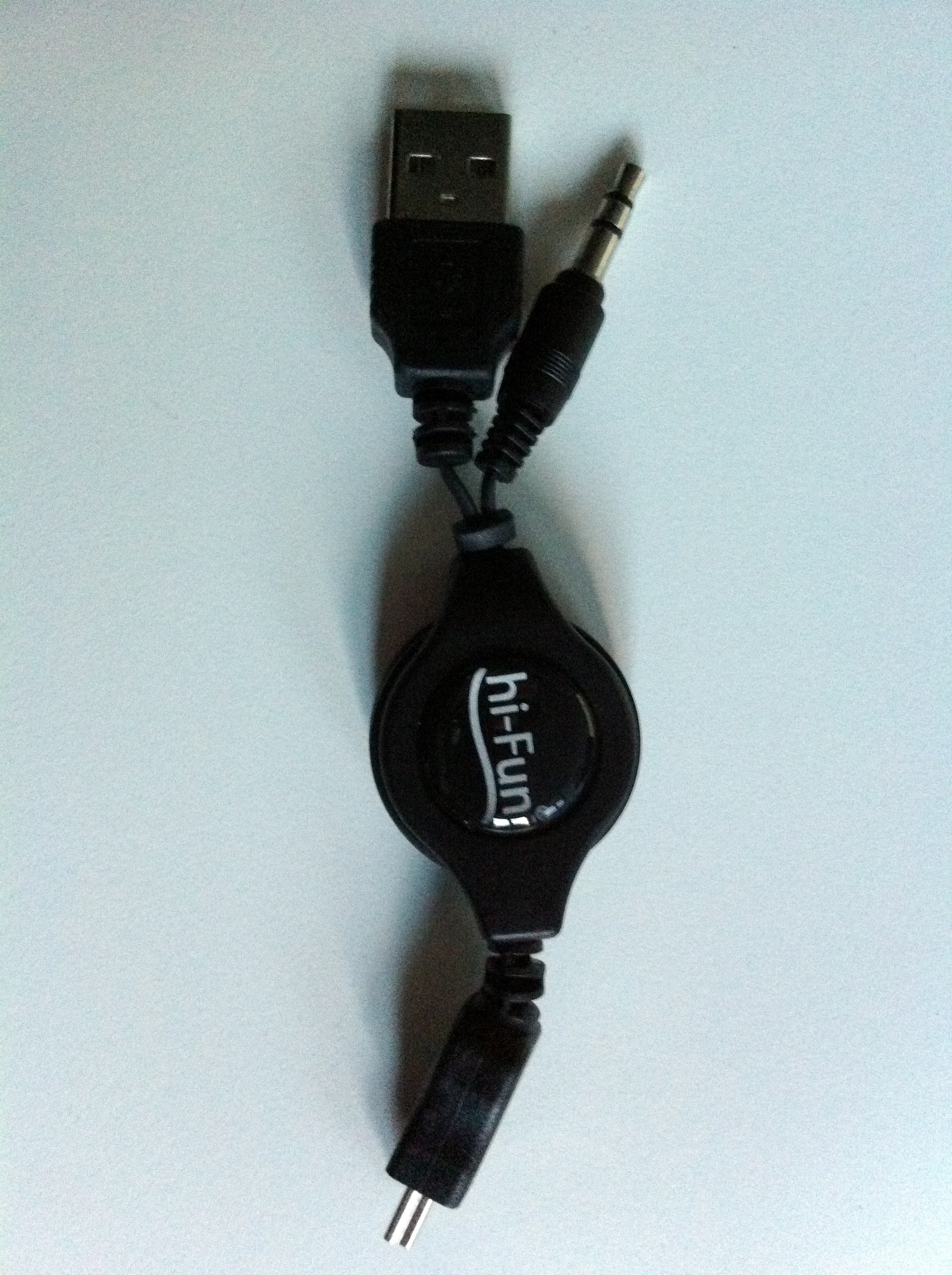 - un cavetto allungabile che ci servirà sia per ricaricare (via USB 2.0) che per collegare l’hi-Bomb ad una fonte audio;