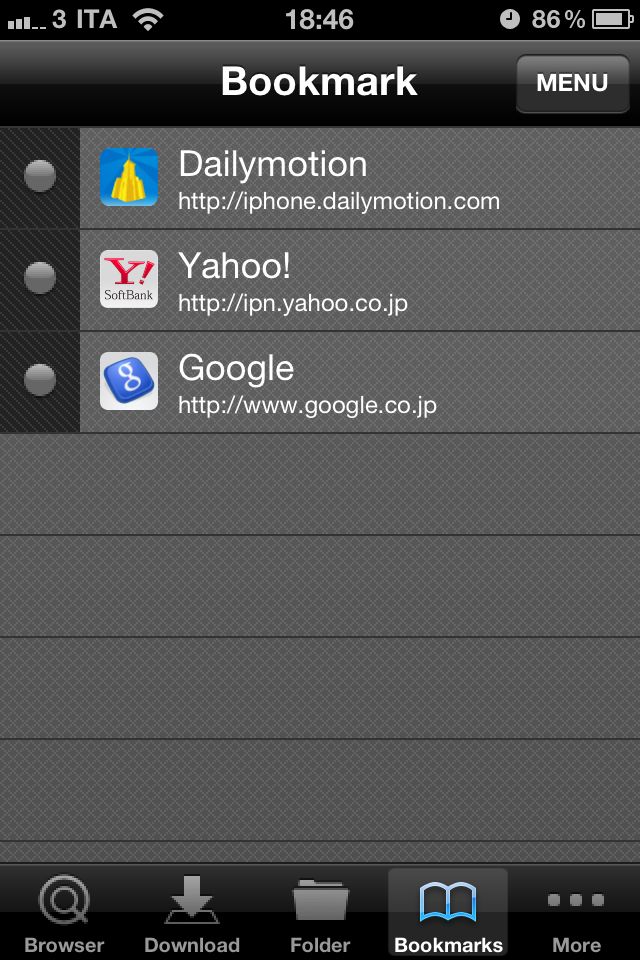 Cliccando sull’opzione “Find DL File”, potremo visualizzare i file che possono essere scaricati all’interno della pagina web corrente. Una volta scaricati, i documenti appariranno nel tab “Download” (raggiungibile tramite la parte inferiore dell’applicazione), e potranno essere trasferiti in cartelle personalizzate (per poter gestire le cartelle, occorrerà acquistare un pacchetto aggiuntivo al costo di 1.59 €, reperibile tramite in-app purchase), raggiungibili tramite il tab “Folder”.