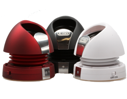 - L’X-mini MAX II è un set di altoparlanti stereo con la particolarità di avere un forma d’uovo.I due diffusori che lo compongono si tengono uniti per via di due magneti presenti nella loro parte inferiore. L’utilizzo è consigliabile su computer portatili che non possedendo audio di altissimo livello, possono trovare in queste piccole ma potenti casse un notevole supporto, nonchè una resa, in qualità d’ascolto, più gradevole e comoda.