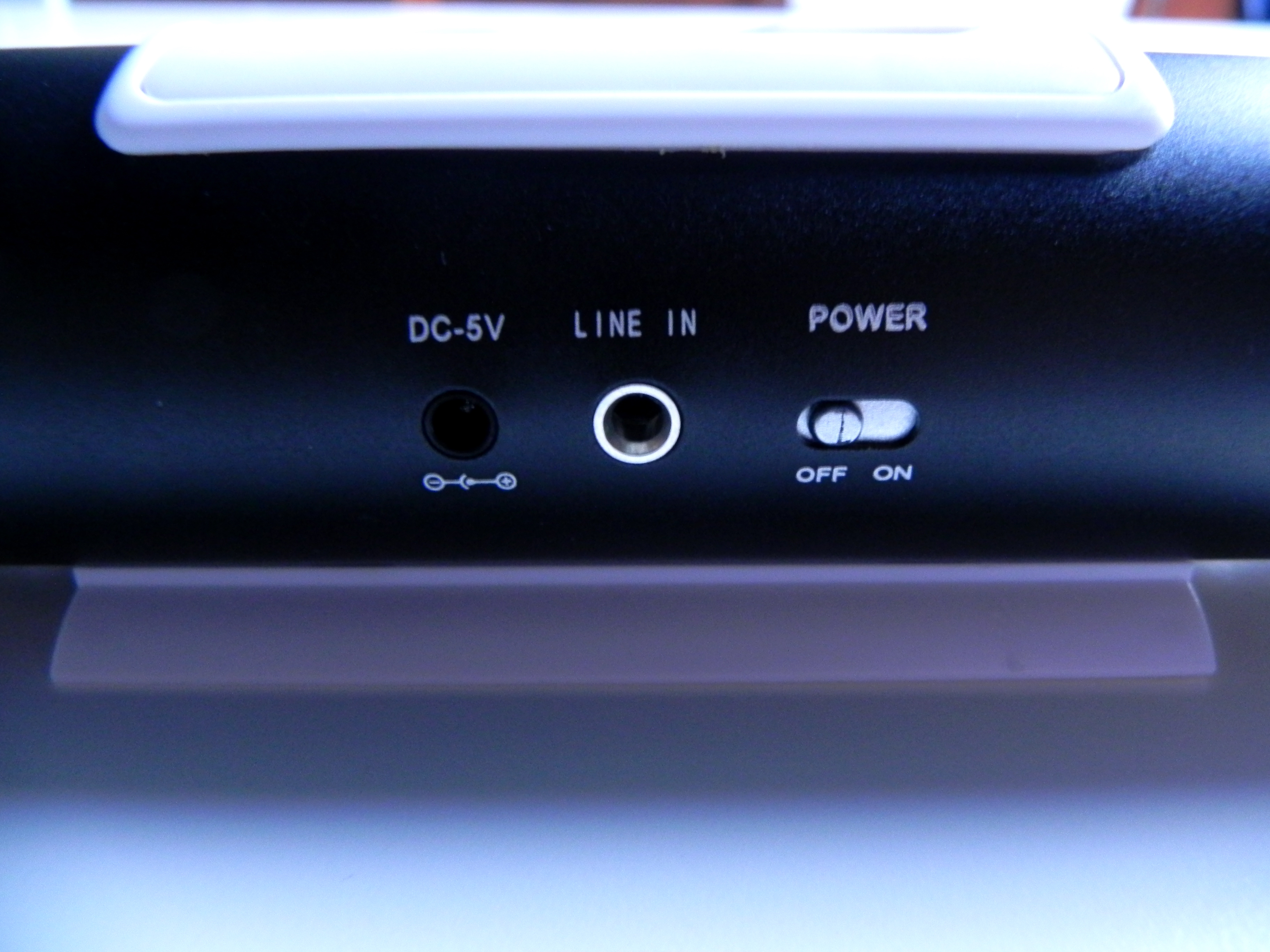 sul retro, infine, c’è l’ingresso jack da 3.5mm, lo slide ON/OFF e il vano per inserire il caricatore USB.