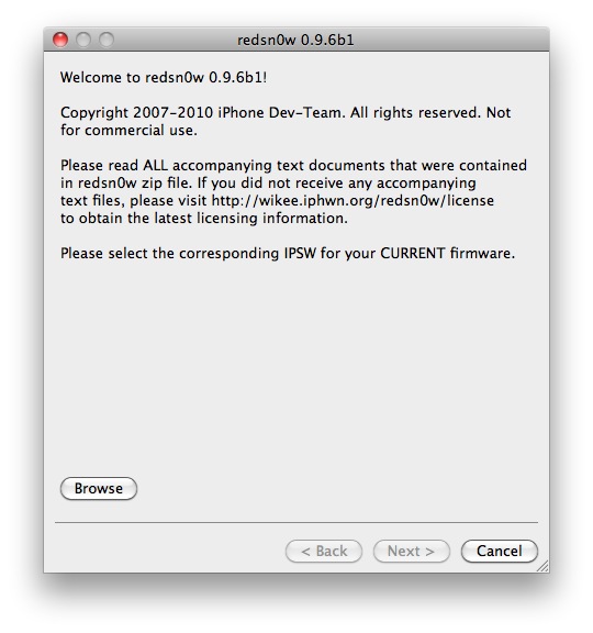 Se avete utilizzato ultrasn0w per sbloccare il vostro dispositivo, dovete attendere il rilascio della nuova versione di PwnageTool. Non utilizzate, quindi, redsn0w. Questo perché, per usare redsn0w con il firmware 4.1, avete bisogno di aggiornare il vostro dispositivo con iOS 4.1 originale. Se aggiornate con iOS originale, perdete la possibilità di effettuare l’unlock con ultrasn0w. Inoltre, il Jailbreak con Redsn0w comporta l’upgrade della baseband per cui se avete un iPhone 3G straniero NON seguite questa guida ma, anche in questo caso, attendete la nuova versione di PwnageTool.