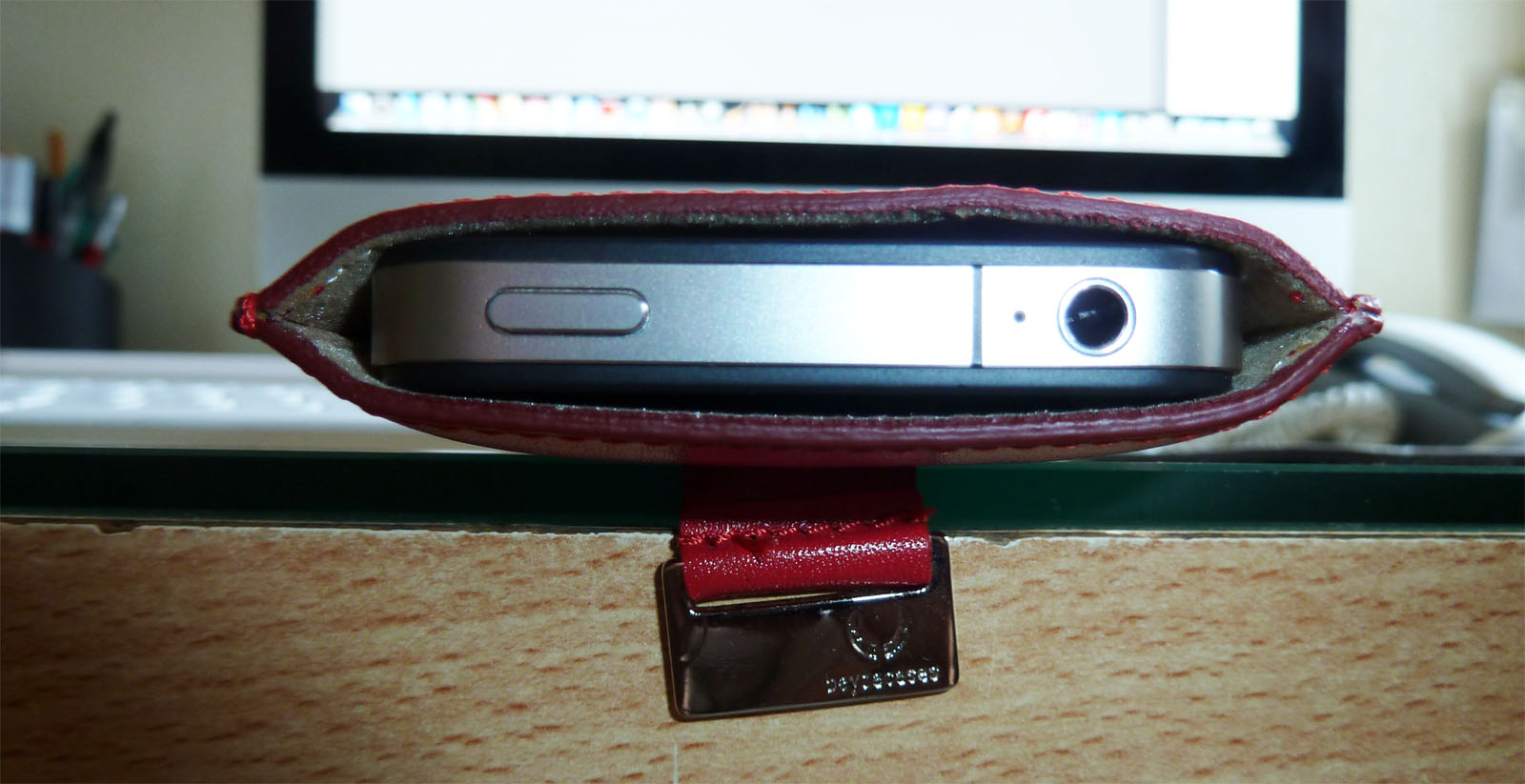 La domanda a questo punto è: “Ora che ho acquistato questa custodia e vi ho inserito il mio melafonino, come lo tiro fuori senza difficoltà?” Beh.. La Strap Classic di Beyzacases risponde senza indugi anche a questo quesito, con un pratico cinturino nella parte posteriore che, con semplicemente tirato con l’ausilio di pollice e indice, farà scivolare per metà e quasi per magia, l’iPhone verso l’esterno.