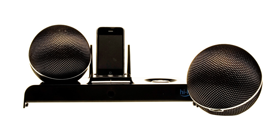 Senza dubbio uno dei punti di forza di hi-Wireless² è proprio il Design. La base è fatta in solida plastica dura, di un nero lucido che si accosta molto bene ai materiali di cui sono fatti i nostri iDevice. Lo stile del design è decisamente minimalista ma comunque molto attento ai dettagli. Le “sfere”, cioè le casse, sono realizzate ottimamente: sono rivestite da ben due strati di tessuto, uno chiaro sotto e uno nero sopra, caratterizzate da maglie orizzontali o verticali, così potremo riconoscere subito dove posizionarle per la ricarica sulla base anche senza guardare sul retro la scritta “L” o “R”.