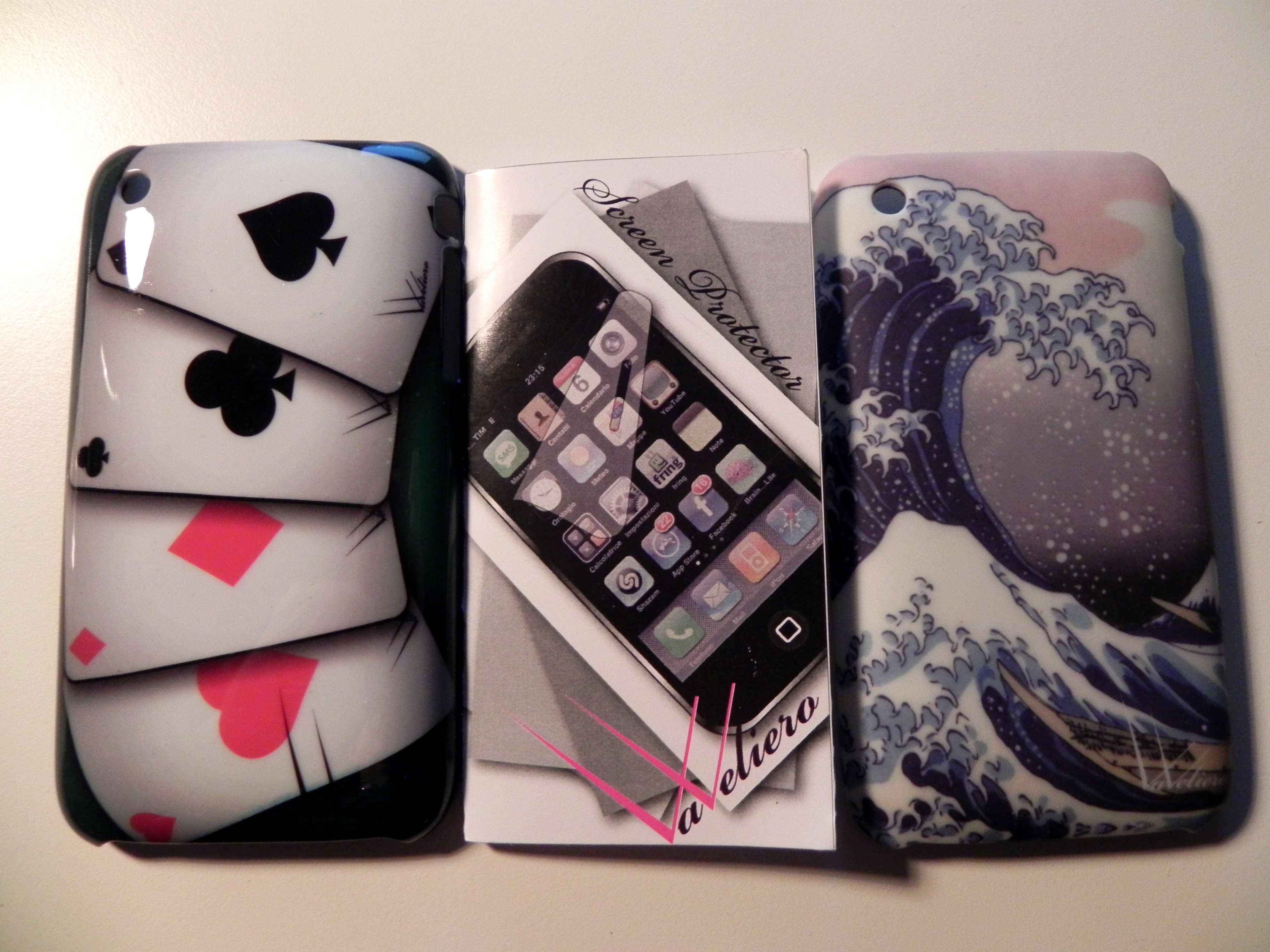 I materiali esterni possono essere diversi: negli esempi che vi proponiamo troviamo che quella con il disegno della Grande Onda (la famosa opera d’arte di Katsushika Hokusai) è di una gomma opaca, piacevolissima al tatto; quella col disegno del Poker d’Assi, invece, è di plastica dura e lucida. Insomma, ce n’è per tutti i gusti!