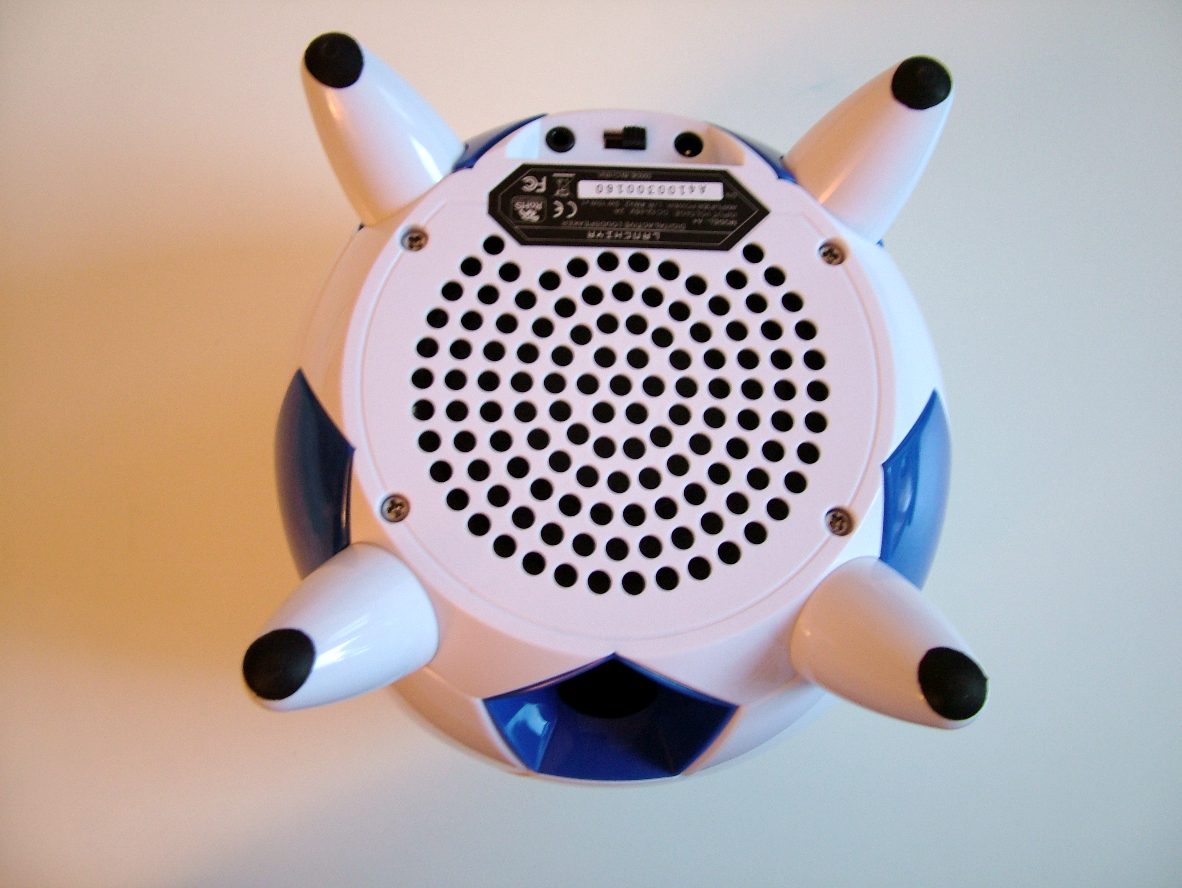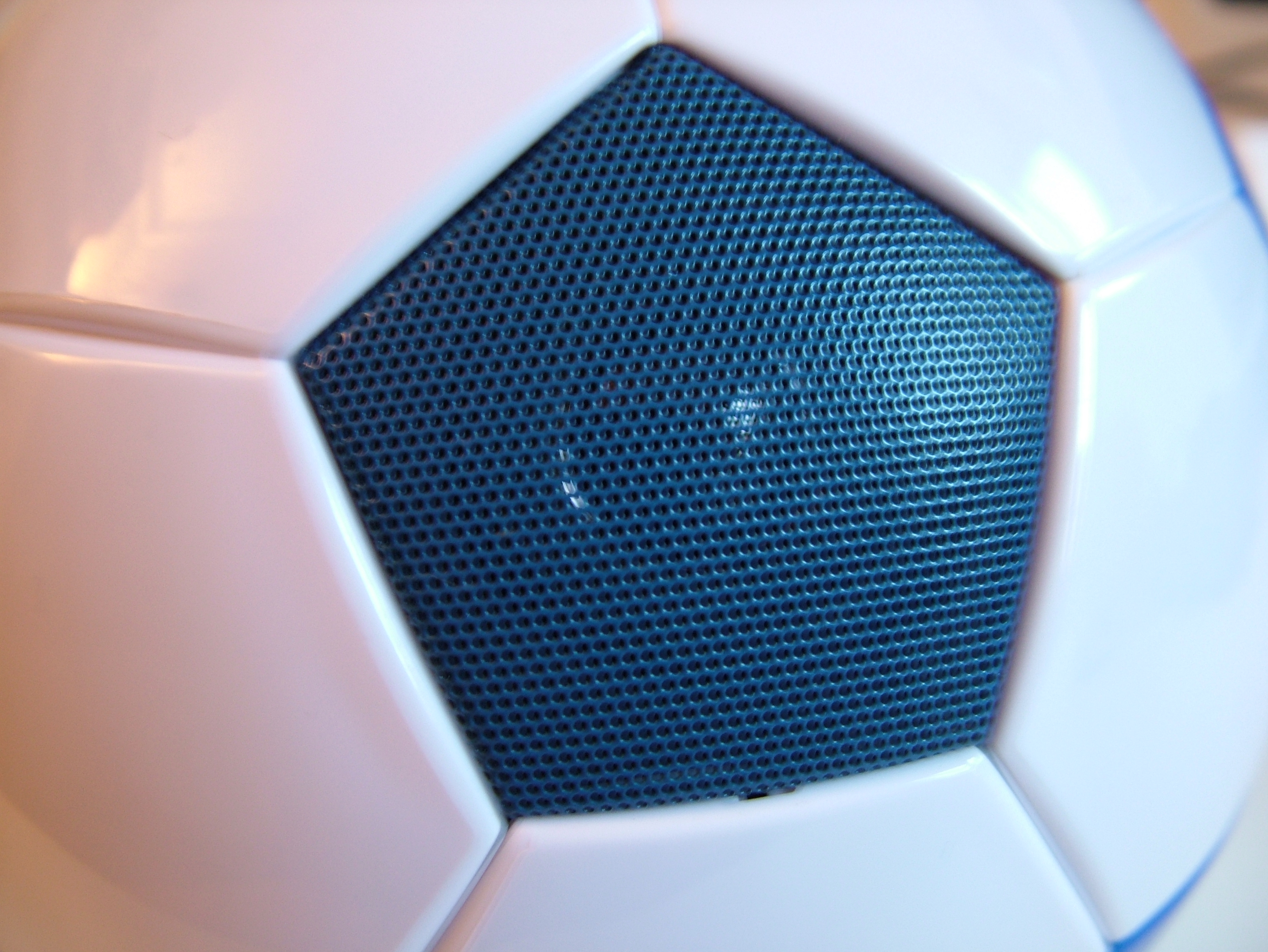 Senza dubbio il design del mi-Football non passerà inosservato. E’ ispirato ad un pallone da calcio e ne ha, più o meno, anche le dimensioni. Quindi la classica sfera bianca con un motivo ad esagoni. Gli speaker e i subwoofer sono inseriti in tre esagoni mentre in quarto sono presenti i comandi e l’attacco per l’alimentazione.
