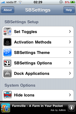 Trovate SBSettings gratuitamente su Cydia tramite la repository di BigBoss.