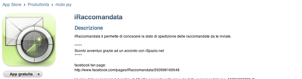 Oggi grazie ad una collaborazione tra iSpazio e Mobi Jay avrete la possibilità di scaricare l’applicazione iRaccomandata gratuitamente. iRaccomandata infatti sarà disponibile solo per oggi passando dal prezzo di 1.59€ a Gratis. [appscreens 359849463]iRaccomandata è un’applicazione disponibile in AppStore che vi permette di conoscere la stato di spedizione delle raccomandate da te inviate semplicemente inserendo il codice di 12 cifre presente nella ricevuta della raccomandata (es. 13021936083-0). Tale dato può essere inserito manualmente o riconosciuto in automatico (OCR) tramite una foto o una scansione della ricevuta.