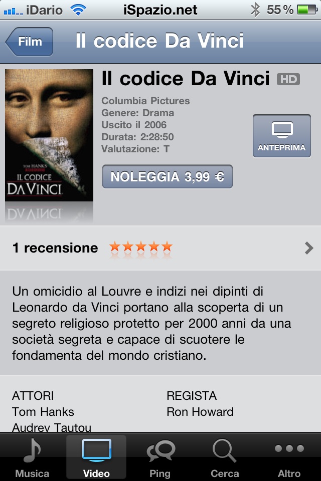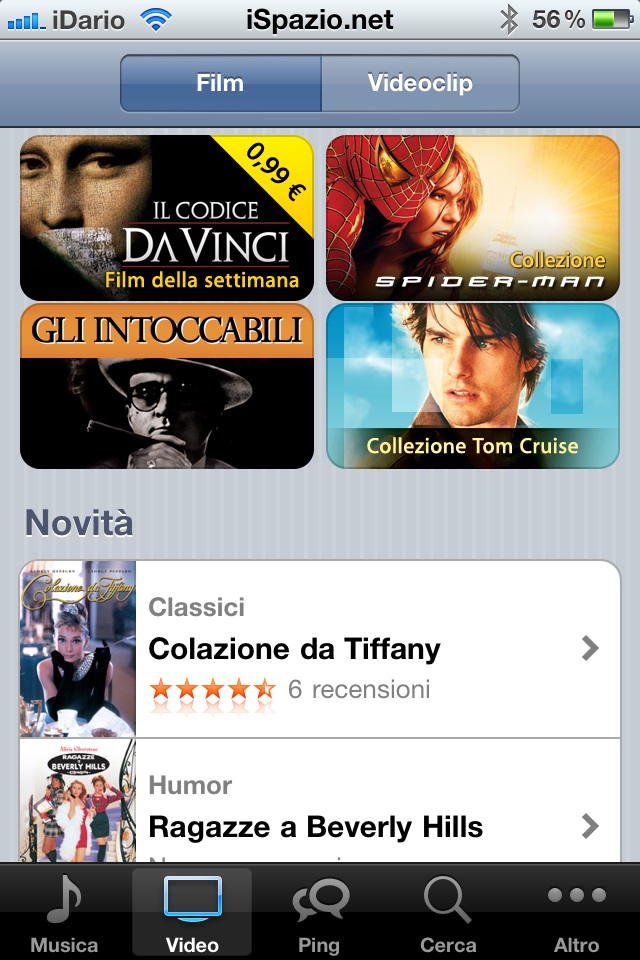 Dalla sezione video dell’applicazione iTunes possiamo con pochi tap vedere anteprime ed acquistare/noleggiare i film che preferiamo. Prevediamo una rapida ascesa del numero dei film disponibili. Per maggiori informazioni vi rimandiamo all’articolo che abbiamo pubblicato poco fà.