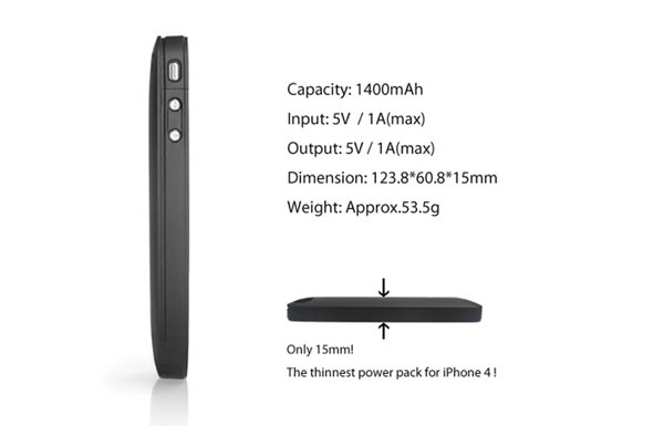 Il tutto in soli 15 millimetri di spessore e 53 grammi di peso, dati importanti che non andranno ad incidere notevolmente sul nostro iPhone 4, così come accade con diversi prodotti di questo tipo presenti sul mercato.