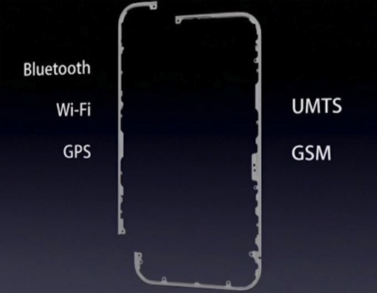 Inoltre, il “taglietto” nella destra del dispositivo è stato inserito semplicemente per questioni di design, non ha alcuna funzione pratica (come ci mostra questa immagine del Keynote in cui venne presentato l’iPhone 4).