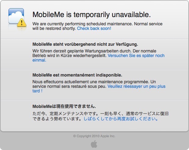 Il sito di MobileMe è da poco offline. A quanto pare Apple è a lavoro anche sul noto servizio di clouding in modo da introdurre novità in contemporanea con il rilascio del nuovo iOS 4.2