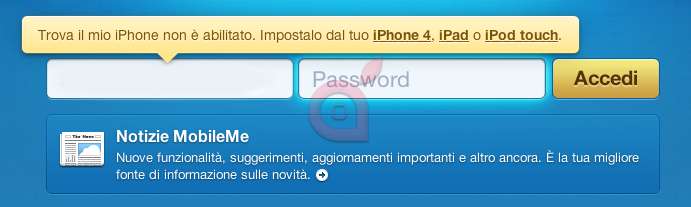 Questa è la nuova pagina di autenticazione (che non compare ancora a tutti gli utenti), ma non è possibile ancora effettuare il login per accedere ai servizi offerti da MobileMe.