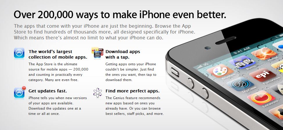 Qualche giorno fa in un altro articolo abbiamo parlato delle app realmente presenti nell’AppStore. Apple ha da poco aggiornato la pagina sul sito ufficiale mostrando questi numeri: oltre 300.000 modi per rendere migliore il tuo iPhone. Il punto è che questo vale solo per gli USA.